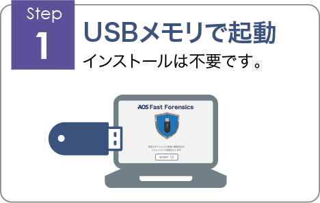 高度な技術を必要とするフォレンジックの初期調査が、USBメモリを調査対象に挿入するだけで簡単に行えるツールです。