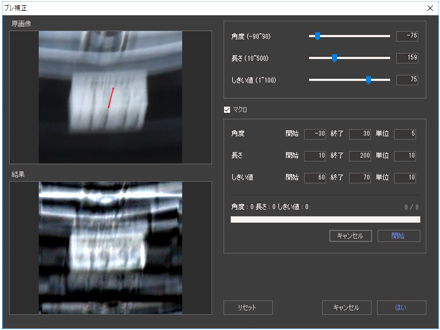 角度がきつく識別が困難な画像を角度補正で広げて解析