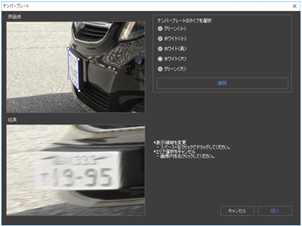 ドライブレコーダーの画像鮮明化事例:ナンバープレートの識別