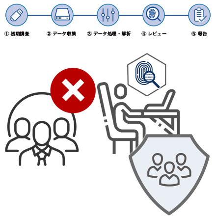 ファストフォレンジック調査により、調査開始時に何が調査の対象にあたるとしている機器のデータ状態を速やかに把握し、保全対象と優先順位を決定します。