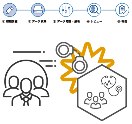 調査対象機器内の証拠性を損なわないように、データの収集を行います。削除されたデータの復元が必要になる場合は、ディスクイメージの収集が必要となります。