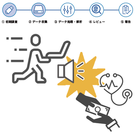 ファストフォレンジック調査により、調査開始時に何が調査の対象にあたるとしている機器のデータ状態を速やかに把握し、保全対象と優先順位を決定します。
