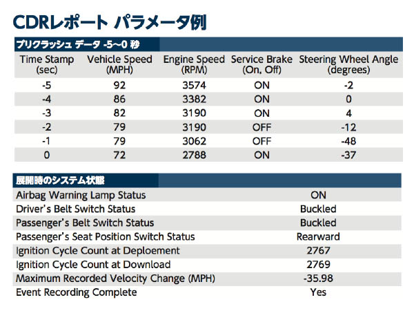 クラッシュデータリトリーバル(CDR)の解析