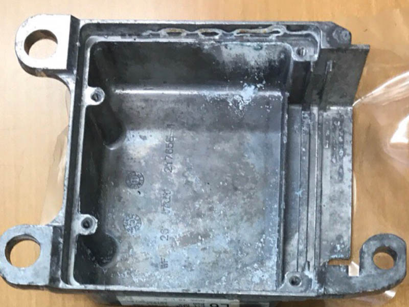 衝突事故の前後に車の挙動がどうであったかを判断するためにイベントデータレコーダ(EDR)を回収して分析します。イベントデータレコーダは、航空機に使われているブラックボックスのように衝撃耐性が強い構造になっています。